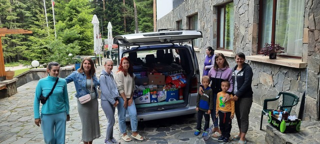 Украинските бежанци в хижата на БДЖ - Паничище получиха днес лекарства, хигиенни материали, санитарни продукти, козметика,