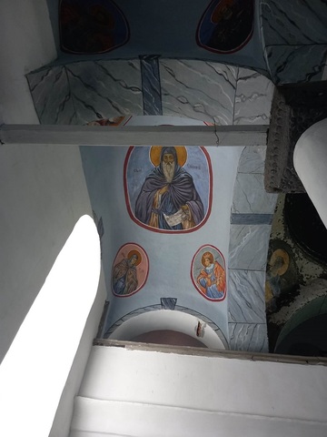 Изобразени са св. Йоан Кръстител, Иисус Христос Вседържител (Пантократор), Бог Саваот и сцената „Богородица Ширшая Небес”. В изпълнението категорично личи майсторството на прочутата школа, основоположник на Самоковската художествена школа, както в живописно отношение, така и по отношение използваната технология и приложени материали. Запазените стенописи в храма са изписвани от поне четирима различни автори. Уникални са обаче, стенописите в предверието на храм„Св. Никола” и там е работил друг, пети автор, подчерта Чергаров. Става въпрос за изображенията, където стои надписът с имената на Тефик Ефенди и Ислам Ефенди. От историята на храма те са ни познати като дарители, които възстановяват щетите от опожаряване на черквата през 1852 година, но реставраторът допуска, че те може дори да са автори на изписаните сцени там. Причината е, че пред имената на Тефик и Ислам в надписа над образа на св. Николай, под арката на централния вход в артиката, пише „приложникъ”. Приложниците, в терминологията на храмовото дарителство, са тази категория дарители, които са допринасяли в миналото за зографисването или вътрешното благоустройство на храмовете, докато ктиторите са тези, които са дарявали пари или земи за построяването на култовите сгради. Работата по възстановяването на стенописите е продължила повче от година. В периода на социализма те са били покрити веднъж с блажна боя, после с безир и накая с латекс. При реставрацията сцените са били запазени, но не и орнаментите. Реставраторът е нарисувал и един нов стенопис, който изобразява св. Йоан Рилски.