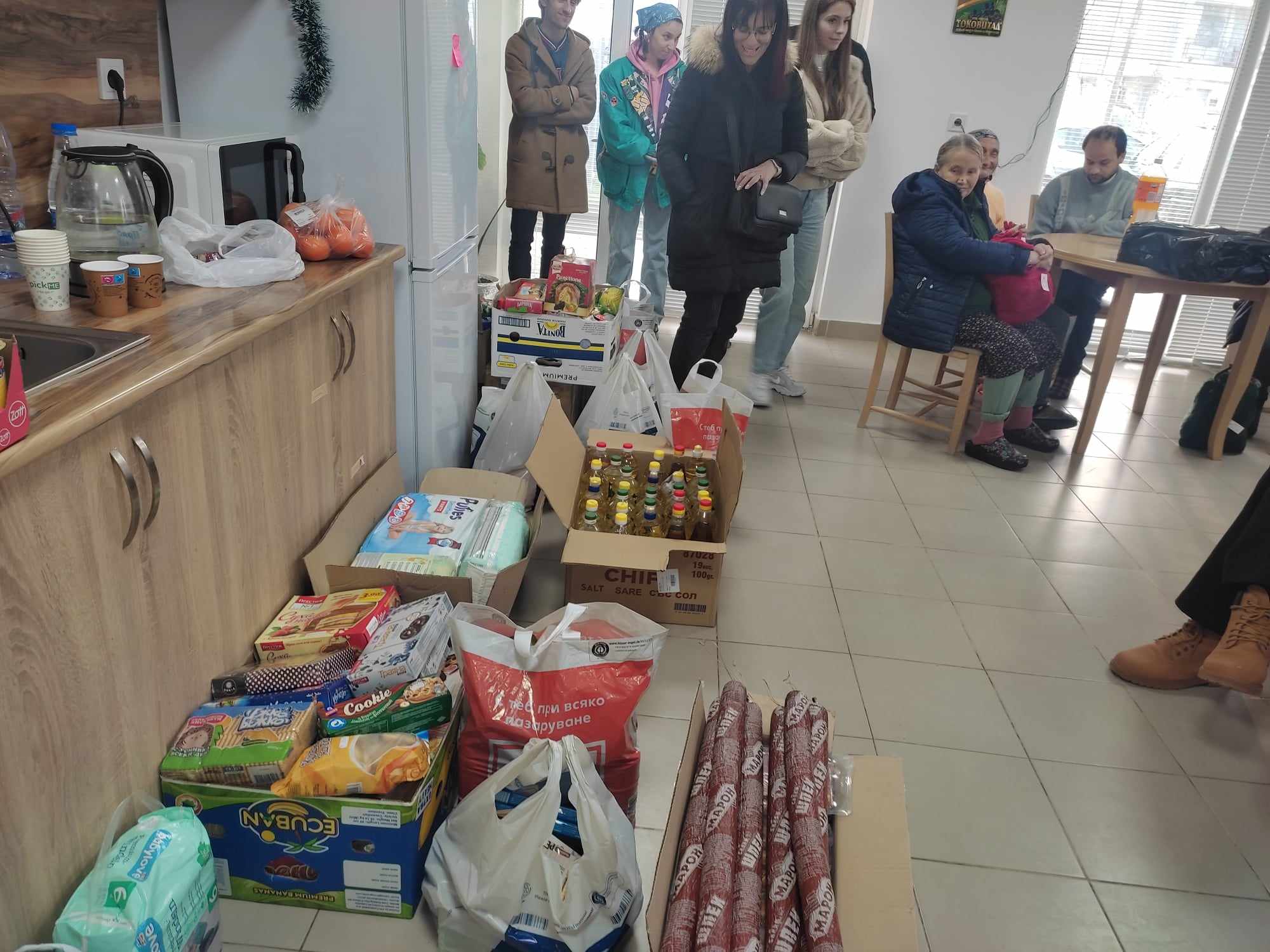 Благотворителната дарителска акция събра огромно количество хранителни продукти – олио, ориз, боб, макарони, спагети, пилешки бутчета, колбаси, сирене, кашкавал, вафли, бисквити, месни и зеленчукови консерви, плодове… И много лакомства за коледната трапеза. Дарители осигуриха още торти и баници за хората без дом и близки, от които днес получиха искрени благодарности. За всеки от тях имаше специално подготвени индивидуални подаръци според личните нужди – красиви жестове на внимание и грижа, които ще намерят под елхата.