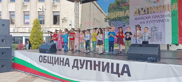 Участие в концертите и забавленията в центровете по изкуства и занаяти взеха децата от ДГ "Зора" и ДГ "Мечта", а от НЧ "Христо Ботев" връчиха на всички представили се групи сертификат. Сертификати получиха и най-малките таланти от ДГ "Мечта"- тригодишната Лора, както и четиригодишните Филип и Георги. В пешеходната зона пред ГУМ, от днес до 25 май включително, са разположени щандове, представящи традиционни български занаяти, като ножарство, дърворезба, плъстене на вълна и др.