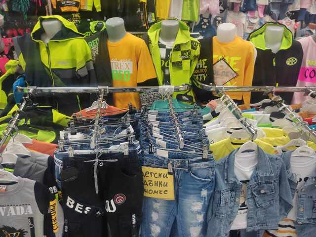 На специализираните щандове за детско облекло на партера и втория етаж ще намерите изобилие от елегантни рокли, туники, костюми, ризи, поли и панталони, за да са децата ви елегантни и стилни в първия ден в детската градина.