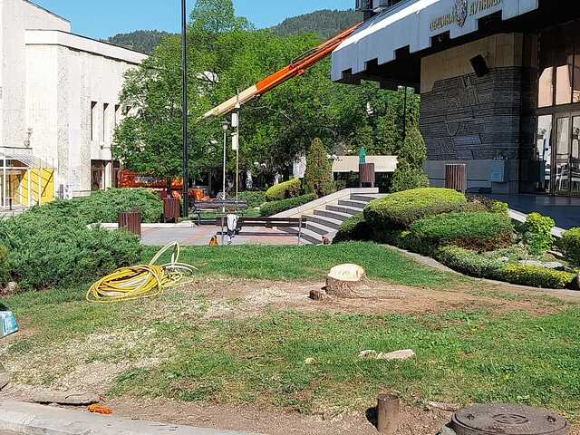 В неделната сутрин на 14 април шум от резачки стресна дупничани, които с изненада видяха работници от Общината, ръководени от кмета Първан Дангов, да режат липите, ели и др. дървета, които озеленяваха пространството пред кметството и на площад “Свобода”. Надигна се вълна от обществено недоволство, особено в социалните мрежи, а от Общината обясниха, че действията са съгласувани с отдел Екология според изготвен проект от ландшафт архитект и не става дума за безразборна сеч, а за нова визия на центъра в Дупница.