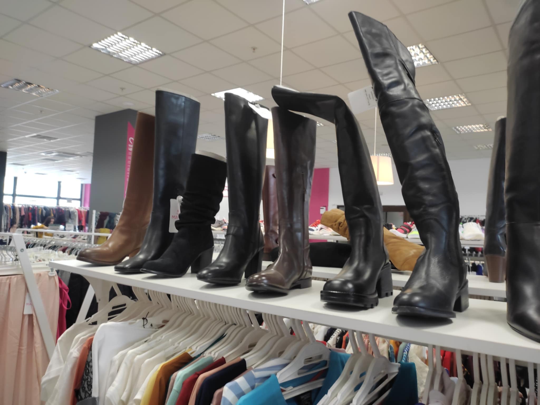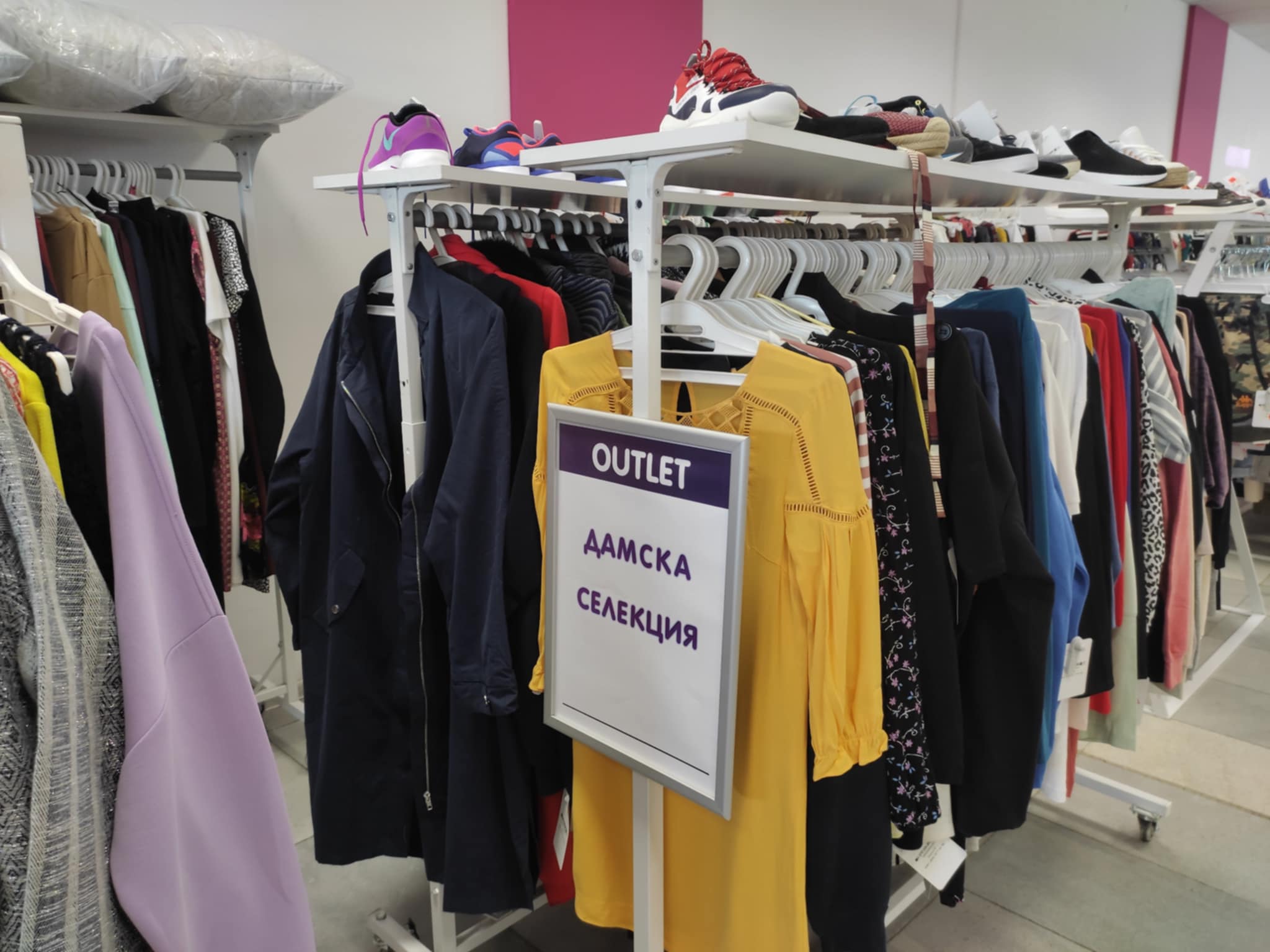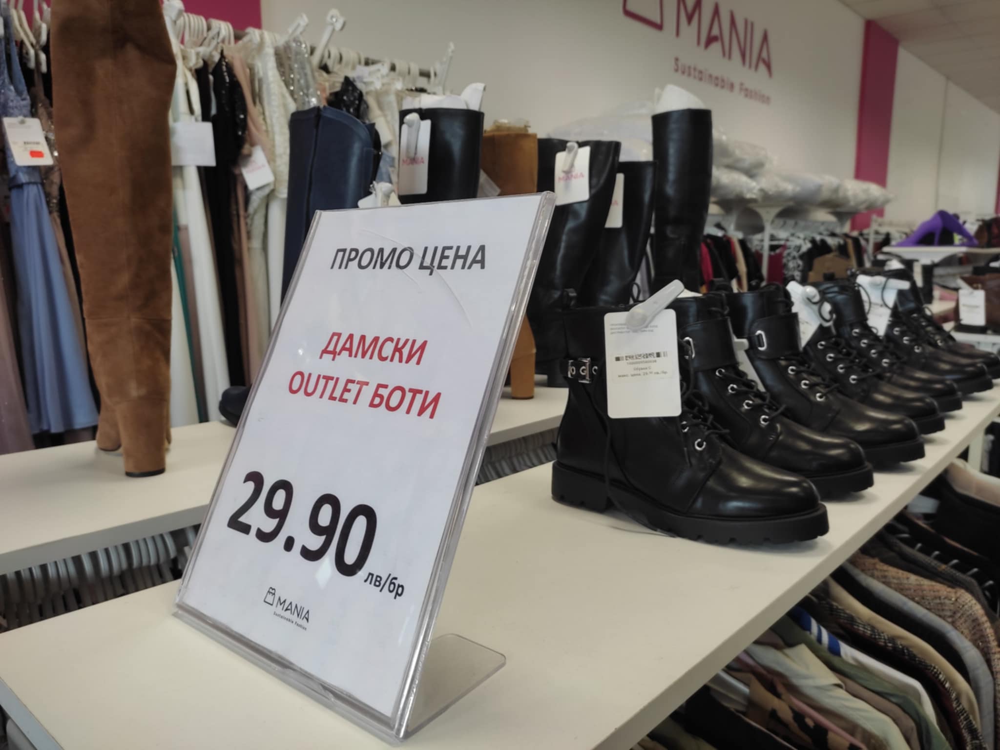 Ще намерите официални рокли, дамски и мъжки ежедневни облекла, поли, панталони, тениски, богат избор на ботуши и особено на качествени дамски боти, които можете да вземете на промо цена от 29,90 лв.