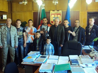 Kметът на Дупница Методи Чимев поздрави днес малките шампиони от боен клуб „Марек”, спечелили медали от надпреварата по бразилско жиу-житцу, провела се преди дни. Той приветства бойците за постигнатите успехи 6-годишният Мартин Миладинов и 10-годишния Габриел Тодоров. Плакети с дърворезба от кмета получиха и златните медалисти Роберто Петров и Даниел Стоичков, както и вицешампионите Симеон Андров, Светослав Гладников и Николай Здравков. Състезателите са подготвени от играещия треньор Симеон Димитров. Подробности за новия за странат спорт, градоначалникът научи от мениджъра на боен клуб „Марек” Минко Минков. “За мен винаги е било удоволствие да посрещам такива спортисти на Дупница. Спортът е бил винаги визитна картичка на всеки един град и именно вие сте нашите подвижни визитки. Пожелавам ви успех на най-високо ниво. А на треньорите да продължават все така неуморно да работят и създават още повече шампиони. Община Дупница е помагала и ще продължи да помага. Вие само тренирайте усърдно и мачкайте наред”, обърна се към гостите си Методи Чимев.