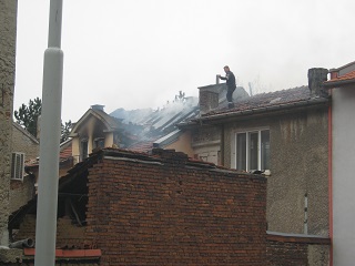Пожар избухна днес преди обяд в къща на ул. „Здравец”, в района на Градската градина. Два пожарни екипа потушаваха огъня, който за минути изпепели таванския етаж на къщата, собственост на Стефка Петрова. Участъкът около къщата бе отцепен, а огнеборците предупреждаваха хората да стоят далече. Не е известна причината за избухване на пожара. В жилището не е имало хора. За инцидента семейството било уведомено по телефона. Сигнал в пожарната подал съсед, който видял издигащия се над къщата дим.