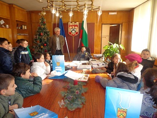 Третокласници от ОУ”Св. Паисий Хилендарски” гостуваха днес на кмета Методи Чимев. Учениците участват в програмата „ Junior Achievement”, а техен ръководител е Мая Василева. Те попитаха градоначалника трудно ли е да си кмет и как да станат кметове като пораснат. Подробна информация за работата на общината като публична институция третокласниците получиха от зам.-кмета по социалните дейности Крум Милев и главния секретар Невена Манова. Те разказаха за структурата на кметството, задълженията на различните отдели, социалните дейности и събирането на данъци и не забравиха да зарадват с подаръци гостите си. Бъдещите предприемачи имаха за задача да се запознаят с работата на институциите и на частния бизнес. Глобалната тема, по която се обучават през настоящата година е „Нашият град”.