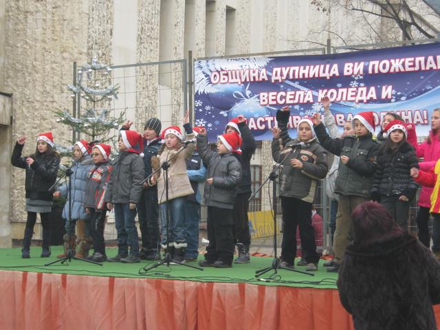 Благотоворителен коледен базар „От деца за деца“ организираха днес общинските читалища и в Дупница. Изработените от децата, под ръководството на читалищните секретари картички, суровачки и украшения за елха, бяха подредени на партерния етаж на кметството. Всички те се продават, а събраните средства ще бъдат предостани за лечение в чужбина на дете от дупнишкото село Самораново. Със свои творби, в благотворителната акция се включиха и възпитаниците на две детски градини. Тя ще продължи до 23 декември включително. Децата показаха и типичните ястия за трапезата на Бъдни вечер, подготвени заедно с отдел „Култура“ на общината и местните читалища. Старт на коледното настроение за дупничани дадоха и малките певци, участници в Коледния концерт на площад „Свобода“ днес. Новогодишни и коледни песни изпяха децата от вокалните групи към училищата „Паисий Хилендарски“ и „Евлоги Георгиев“, както и фолклорна група „Цвете“ към читалище „Спартак“.