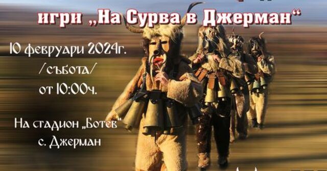 12 групи досега са заявили участие във Фестивала на маскарадните игри “На сурва в Джерман”, който ще се проведе на 10 февруари, информира председателят на читалище “Пробуда – 1926” Анастасия Давкова. Над 1 000 сурвакари, кукери, бабугери, джамалари ще се включат в мащабния форум, организиран от читалището съвместно с община Дупница.