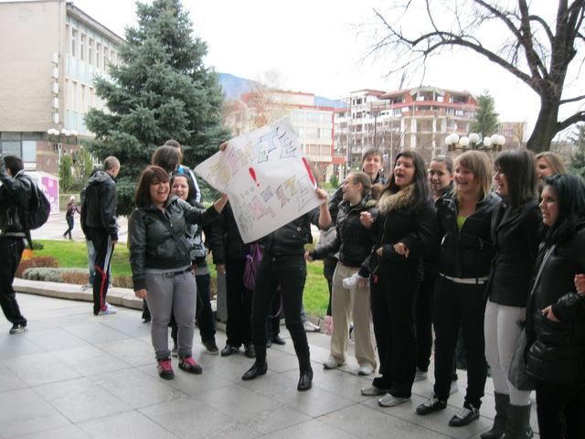 Над 200 ученици от дупнишки училища излязоха на протест за по-дълга коледна ваканция. Протестиращи от средните класове на Гимназията по облекло и гимназия “Христо Ботев” се събраха на площад “Свобода”, за да заявят намерениета си да не се върнат в класните стаи, докато не бъдат изпълнени исканията им. “С всяка година ваканцията намалява. Искаме тя да продължи поне до 10 януари, защото след това ни чакат класни и контролни и имаме нужда от почивка”, обясни мотивите за протеста ученикът от 9 клас на гимназията по облекло Михаил Джельов. Учениците се срещнаха със зам.-кмета Даниела Ушатова и след като избраха инициативен комитет на протеста, събраха подписка, в която се включиха над 100 души. Тя ще бъде изпратена до министъра на образованието. Въпреки обяснението на зам.-кмета, че т.нар. стачка е назаконна и протестиращите не са уведомили за нея ръководствата на училищата, учениците са категорични, че няма да влязат в клас. По-късно към тях се присъединиха и възпитаници на СОУ “Паисий Хилендарски”.