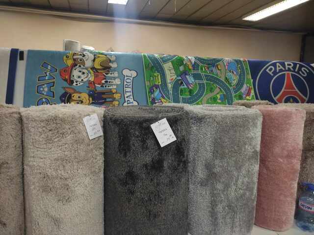 Там ще намерите най-големият избор на килими – стотици модели с различен дизайн – класически, модерни или луксозни, за офиса или дома, за обществени помещения, детски, релефни, летни или зимни, както и такива с антихлъзгаща постелка. На ваше разположение е най-богатата колекция от шаги – известни като рошави килими, в богата палитра от цветове, размери и десени.