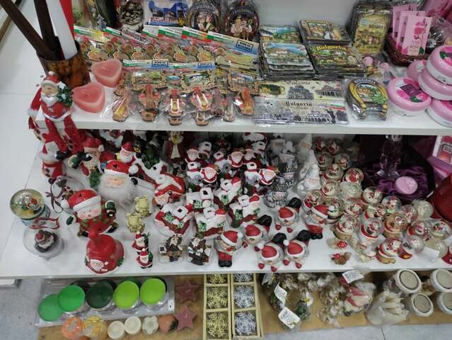 На сувенирните щандове на търговците ще ви помогнат с идеи, за да изберете подаръци за вашите близки и приятели или просто да украсите дома си за Коледа и Нова година. Там ще намерите коледни декорации за маса, коледни фигурки, свещници и свещи, преспапиета, опаковки за подаръци, стенни и ръчни часовници, корпоративни подаръци /за служители и колеги/, покривки, подложки за хранене, кутии за бижута, рамки, лампи, пепелници, картини, гоблени, статуетки, декоративни бутилки, традиционни български сувенири и много други красиви и забавни подаръци, които ще придадат настроение на вашия празник.