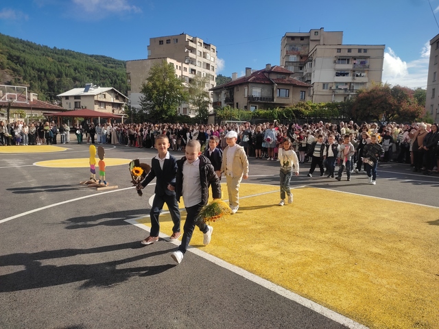 Първият звънец огласи днес препълнения двор на СЕУ “Св. Паисий Хилендарски” в Дупница. Развълнувани ученици, родители, учители и най-вече първокласници се събраха, за да дадат заедно старт на новата учебна година. Разбира се, най-емоционелен бе днешният 16 септември за първокласниците. 67 деца, разпределени в три паралелки, намериха своите учители и им подариха красиви букети.