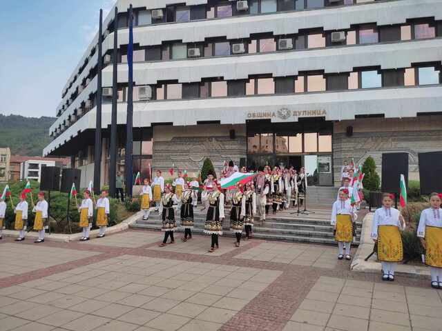 Българското знаме бе издигнато на пилона пред Община Дупница с тържествена церемония. Поводът беше отбелязването на 139 години от Съединението на Княжество България и Източна Румелия.